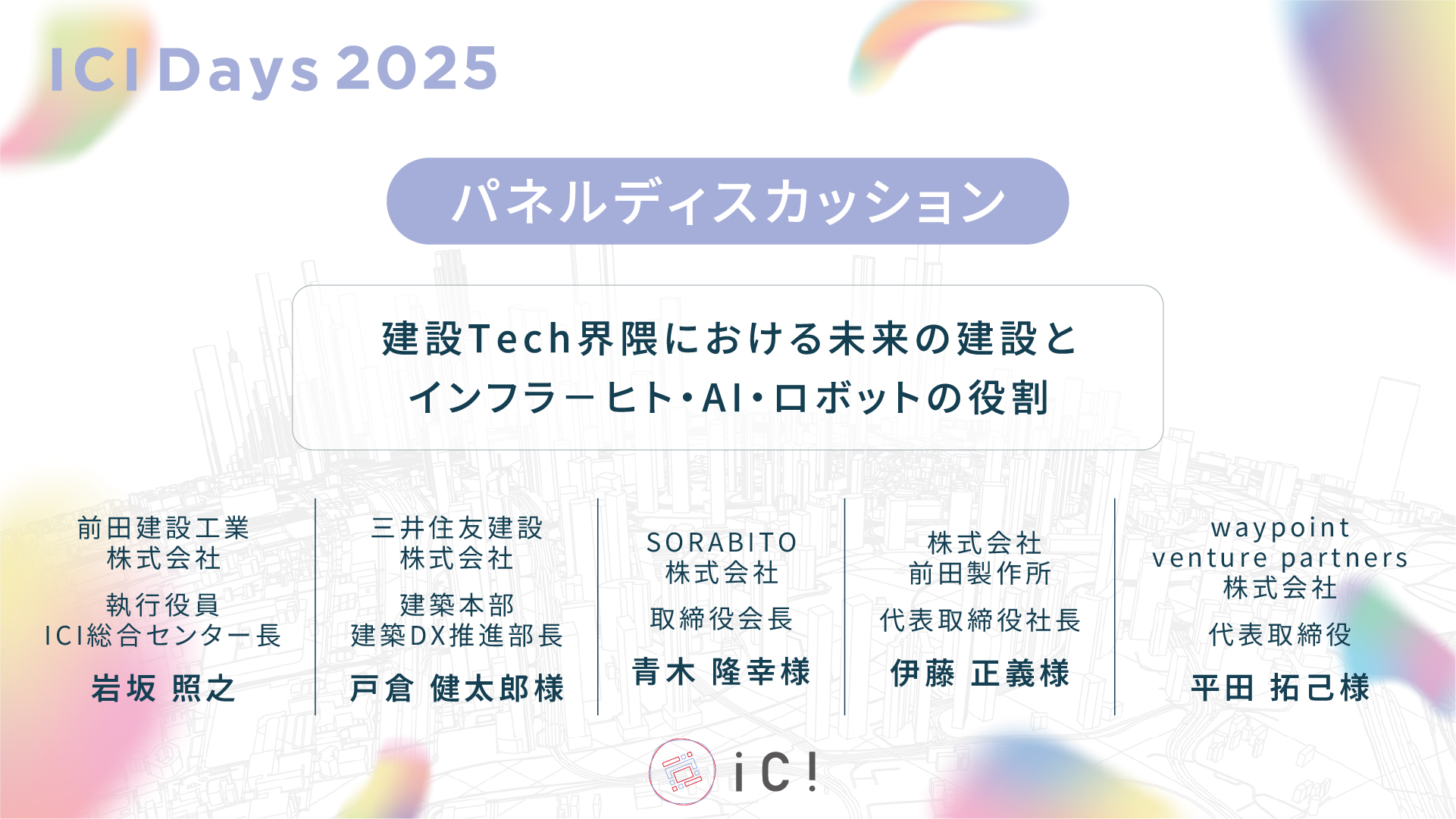 2025年11月6日(木)に前田建設工業株式会社のICI総合センターで開催された「ICI Days 2025」のパネルディスカッションにSORABITOの取締役会長、青木の登壇機会をいただきました。