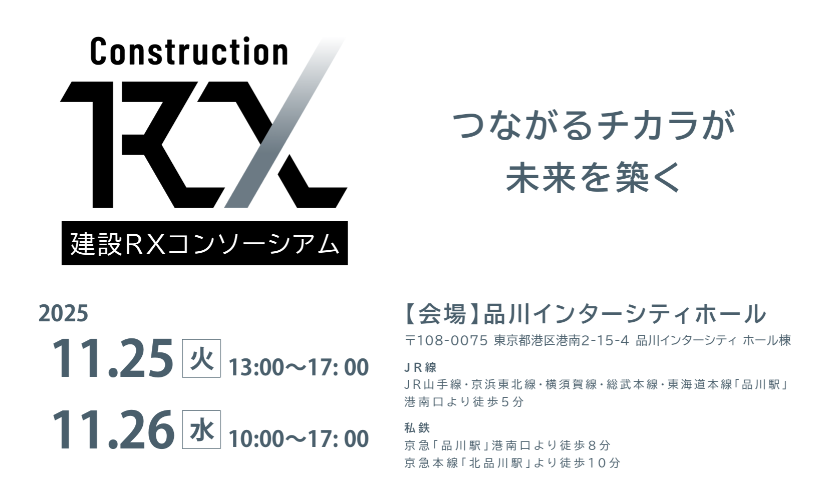 2025年11月25日~26日に品川インターシティホールにて開催される建設RXコンソーシアム エキシビション2025に出展いたします。