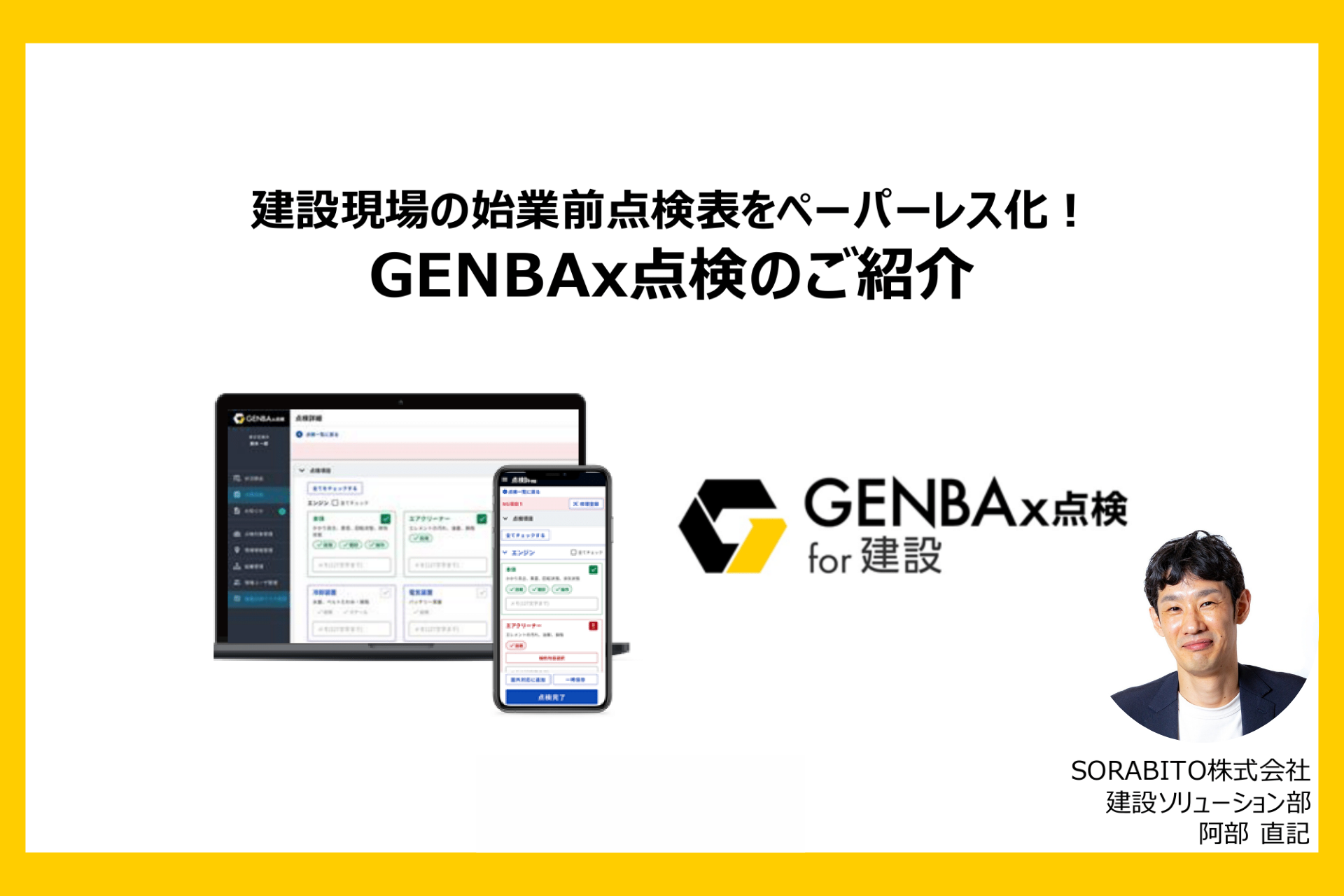 本ウェビナーでは、建設現場の点検表ペーパーレス化サービス「GENBAx点検」の活用方法を詳しく解説し、管理者がデスクにいながら現場を確実にコントロールできる具体的な管理機能と運用イメージを踏まえご紹介します。